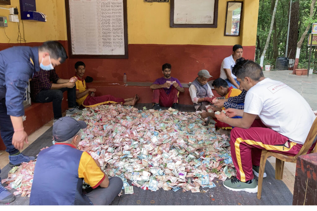 गलकोट । बागलुङको कालिका मन्दिरमा कर्मचारीहरु चैते दशैँका अवसरमा भक्तजनले चढाएको संकलित भेटी गन्दै छन् । तस्बिरः खेमराज गौतम/रासस