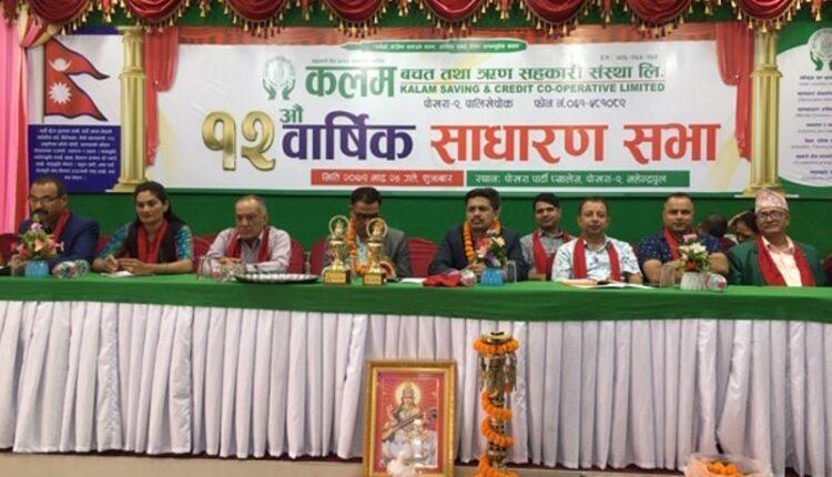 पोखरा । पोखरा ९ पालिखे चोकमा रहेको कलम बचत तथा ऋण सहकारी संस्था लिमिटेडको १२औँ साधारण सभा सम्पन्न भएको छ । सहकारीका अध्यक्ष अर्जुन पोखरेलको अध्यक्षतामा भएको कार्यक्रममा कास्की बचत तथा ऋण सहकारी संघका अध्यक्ष भेषराज बराल प्रमुख अतिथि रहेका थिए ।