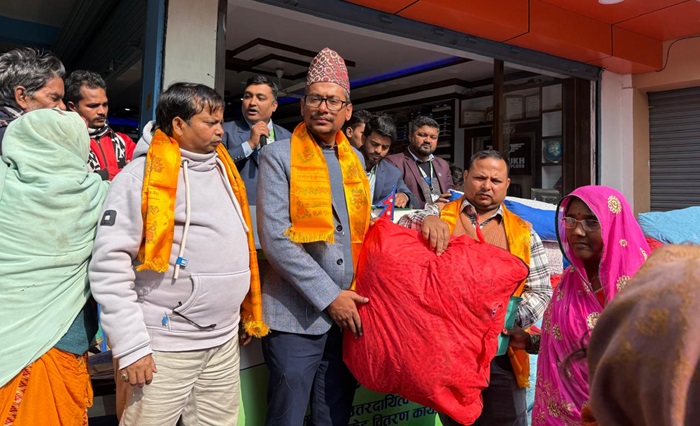 लहान । कामना सेवा विकास बैंक लिमिटेडले आफ्नो सामाजिक उत्तरदायित्व अन्तर्गत लहान नगरपालिका वडा नं. ५ का गरिब, दलित र अति विपन्न परिवारलाई जाडोयाममा फाइबर सिरक वितरण गरेको छ ।