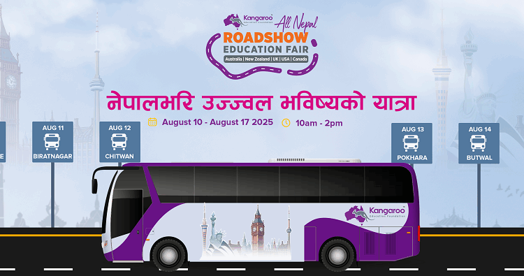 काठमाडौं । कंगारु एजुकेशन फाउन्डेशनले देशभरका विद्यार्थीलाई अन्तर्राष्ट्रिय अध्ययनका अवसरबारे जानकारी गराउने उद्देश्यले “All Nepal Roadshow Education Fair 2025” सञ्चालन गर्ने भएको छ।