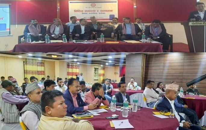 काठमाडौं । नेपाल उद्योग वाणिज्य संघ काठमाडौंले बैंक तथा वित्तीय समस्या र समाधानका विषयमा बृहद अन्तरक्रिया कार्यक्रम गरेको छ । मंगलबार संघले उद्योगी व्यवसायीहरुसहित सरोकारवालाहरुको उपस्थितिमा कार्यक्रम गरेको हो ।
