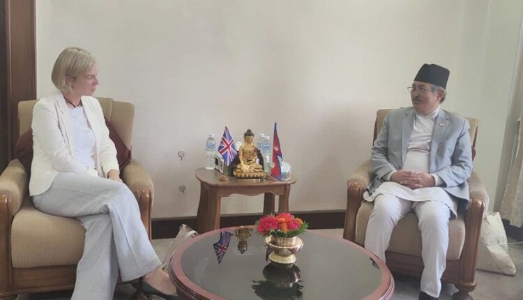 Kathmandu. UK’s ambassador to Nepal, Nicola Kathryn Pollitt today held a courtesy meeting with Home Minister Bal Krishna Khand. During the meeting took place at the Ministry of Home Affairs, the two discussed about the matters relating to further consolidation of bilateral ties.