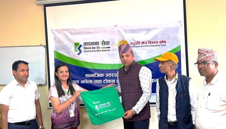 काठमाडौं । कामना सेवा विकास बैंकले सामाजिक उत्तरदायित्व कार्यक्रम अन्तर्गत पशुपति क्षेत्र विकास कोषलाई ५ हजार थान जुत्ता झोला र १ हजार थान टोकन हस्तान्तरण गरेको छ ।
