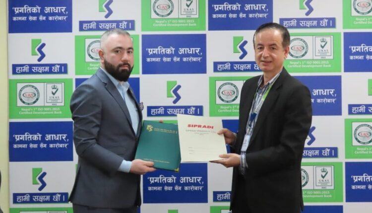 यस सम्झौतामा कामना सेवा विकास बैंकका तर्फबाट का.मु. कार्यकारी अधिकृत विनय दाहाल र सिप्रदी ट्रेडिङको तर्फबाट महाप्रबन्धक शास्वत जंग सिजापतीले एक कार्यक्रमका बीच सम्झौता पत्रमा हस्ताक्षर गरेका हुन् ।
