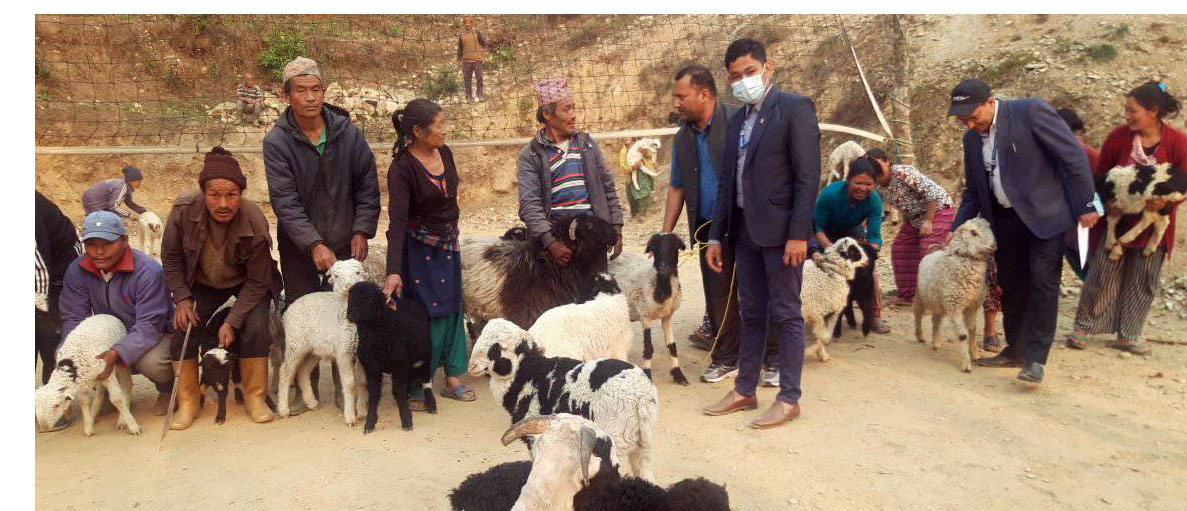 फुङलिङ । ताप्लेजुङको फुङलिङ नगरपालिकाले ७५ प्रतिशत अनुदानमा दिएको भेंडाका पाठापाठीका साथमा किसान । नगरपालिकाले अनुदानमा किसानलाई भेंडाको ५८ वटा पाठापाठी दिएको हो । तस्बिर सौजन्यः फुङलिङ नगरपालिका/रासस