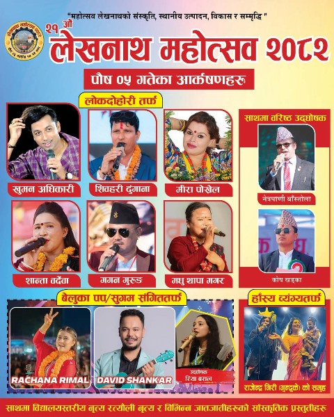लेखनाथ । महोत्सव लेखनाथको संस्कृति, स्थानीय उत्पादन विकास र समृद्धि’’ भन्ने मुल नाराका साथ लेखनाथ उद्योग वाणिज्य संघको आयोजनामा पुस ३ गतेबाट लेखनाथमा शुरु भएको २१औं संस्करणको लेखनाथ महोत्सव जारी छ । आज शनिबार भएकाले महोत्सव अवलोकनकर्ता धेरै हुने आयोजकको अनुमान छ ।