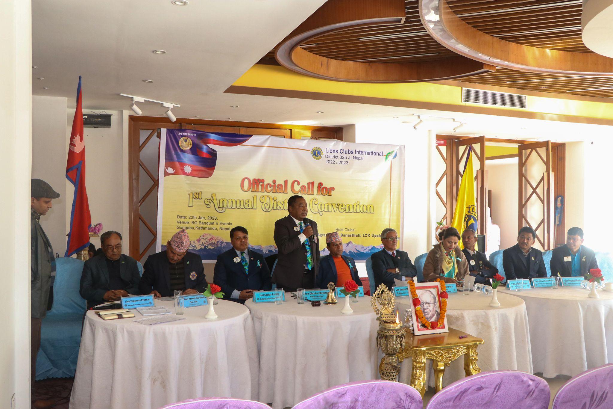 स्वास्थ्य, शिक्षा, वातावरण, मानवीय सहायता, नेतृत्व विकास साथै जनचेतनामुलक कार्यमा समर्पित लायन्स क्लब अन्तर्राष्ट्रिय, डिष्ट्रिक्ट ३२५ जे, नेपालको वार्षिक जिल्ला अधिवेशन काठमाडौंस्थित राष्ट्रिय सभा गृह, प्रदशनी मार्गको सभाहलमा हुनेछ । आइतबार एक कार्यक्रमबीच डिष्ट्रिक्ट गभर्नर ध्रुव श्रेष्ठले कन्भेन्सन कल गरेका छन् ।