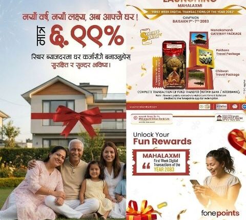 काठमाडौं । ग्राहकलाई अत्याधुनिक, सुरक्षित तथा सहज बैंकिङ सुविधा उपलब्ध गराउँदै आएको यस महालक्ष्मी विकास बैंकले नेपाली नयाँ वर्ष २०८३ लाई लक्षित गर्दै विभिन्न योजनाहरु सार्वजानिक गरेको छ ।