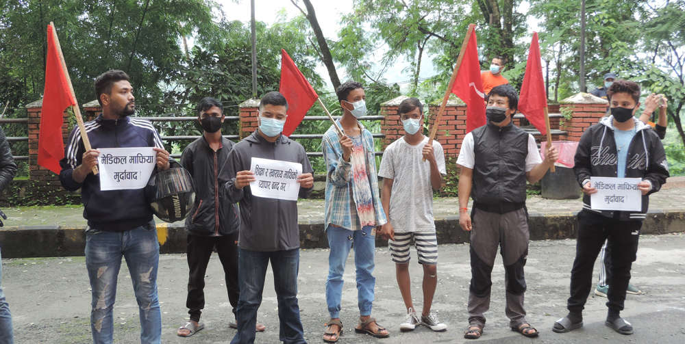 अखिल क्रान्तिकारी र अखिल नेपाल विद्यार्थी युनियनले हस्पिटल निजी क्षेत्रलाई बिक्री नगर्न चेतावनी दिदै सोमबार विरोध प्रदर्शन गरेका हुन् ।