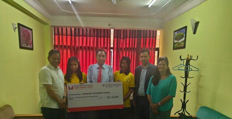 फाइनान्सको तपÞर्mबाट फाइनान्सका चिफ बिजनेस अफिसर गणेश खत्री, अनन्त सेवा आश्रमका प्रमुख कार्यकारी अधिकृत उदय राजभाट तथा मुनलाईट स्कुलका प्रध्यानाध्यापक इश्वर गुरुङलाई संयुक्त रुपमा चेक हस्तान्तरण गरेका हुन् ।