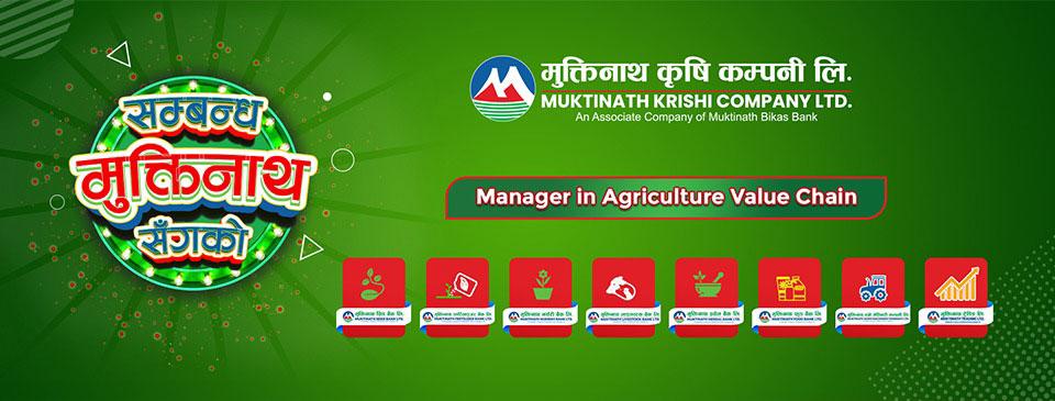 काठमाडौं । मुक्तिनाथ कृषि कम्पनी लि.को छैठौं वार्षिक साधारण सभा पुस २६ गते शुक्रबार हुने भएको छ । यती इभेन्ट्स एण्ड कन्फरेन्स सेन्टर, बसुन्धरा काठमाडौंमा दिउसो एक बजे साधारणसभा आह्वान गरिएको कम्पनी सचिव रामशरण तिमल्सिनाले जानकारी दिए ।