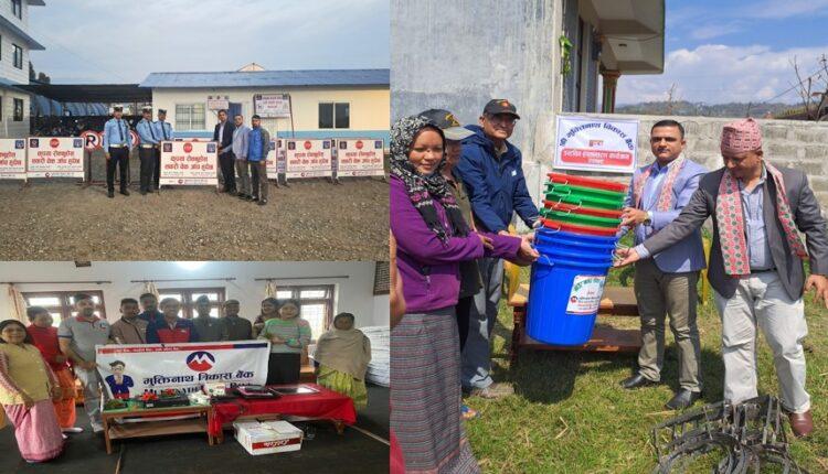 काठमाडौं । मुक्तिनाथ विकास बैंक लिमिटेडले सामाजिक उत्तरदायित्व कार्यलाई निरन्तरता दिँदै २०७९ साल चैत्र महिनामा विभिन्न सामाजिक उत्तरदायित्व मुलक कार्यक्रमहरु सम्पन्न गरेको छ ।