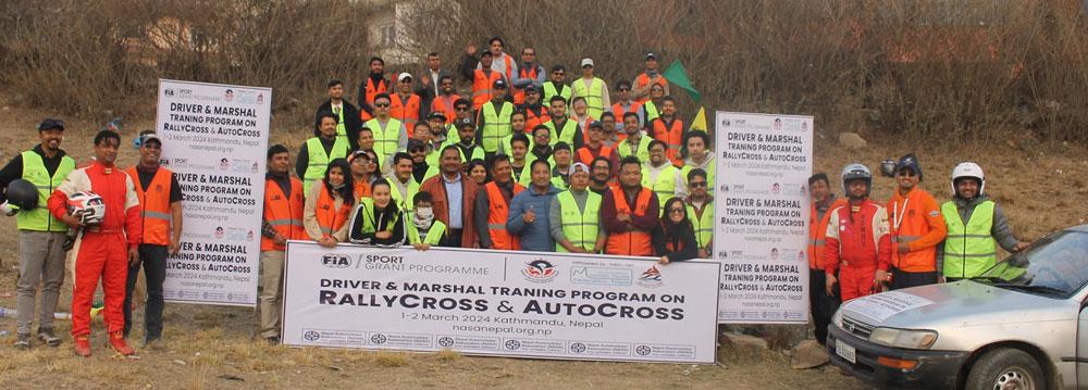 on the same days, on the 18th and 19th of Falgun, the driver training on rallycross and autocross for 36 drivers was conducted by national and international trainers. Mr. Vijamane, Asia Pacific Sports coordinator, along with other instructors provided information about the role and responsibilities of drivers, as well as driving styles. The training encompassed both theoretical sessions and practical exercises.