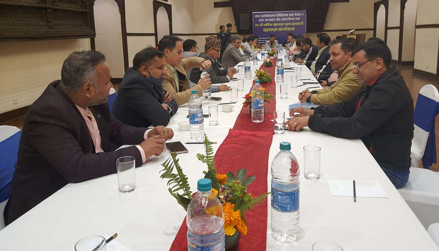 काठमाडौं । नाडा अटोमोबाइल्स एसोसिएसन अफ नेपाल र प्रदेश अध्यक्षहरूबीच अन्तरक्रिया सम्पन्न भएको छ ।
