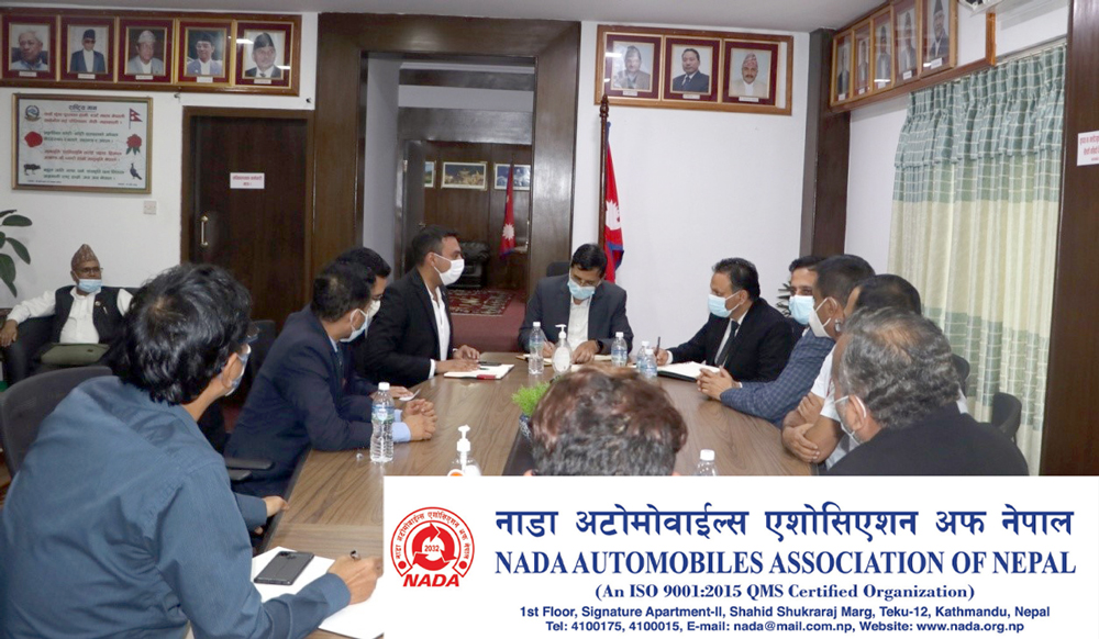 काठमाडौं । नाडा अटोमोबाइल एसोसिएसन अफ नेपालको प्रतिनिधि मण्डलले बुधबार अर्थमन्त्री जनार्दन शर्मासँग भेटेर प्रतिस्थापन बजेटका सन्दर्भमा छलफल भएको छ । नाडाका उपाध्यक्ष करण चौधरीको नेतृत्वमा गएको ८ सदस्यीय प्रतिनिधि मण्डलले अर्थमन्त्री शर्मासंग भेटी बजेटले अटोमोबाइल क्षेत्रमा पारेको प्रभावबारे छलफल गरेको हो ।