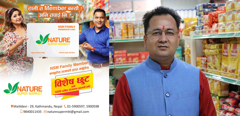 व्यावसायिक क्षेत्रमा ३ दशक लामो अनुभव संगालेका व्यवसायीहरुको नेतृत्वमा नेचर सुपरमार्केट सञ्चालनमा गत कात्तिकबाट सञ्चालनमा आएको छ । ‘छोटो समयमा ग्राहकबाट उत्साहपूर्ण माया प्राप्त गरेका छौं,’ धामीले भने, ‘बजारको माग र आम उपभोक्ताको आवश्यकता अनुसार गुणस्तरीय खाद्यान्न तथा ग्रोसरी सामानहरु ग्राहकमाझ उपलब्ध गराउन हामी सफल छौं ।’