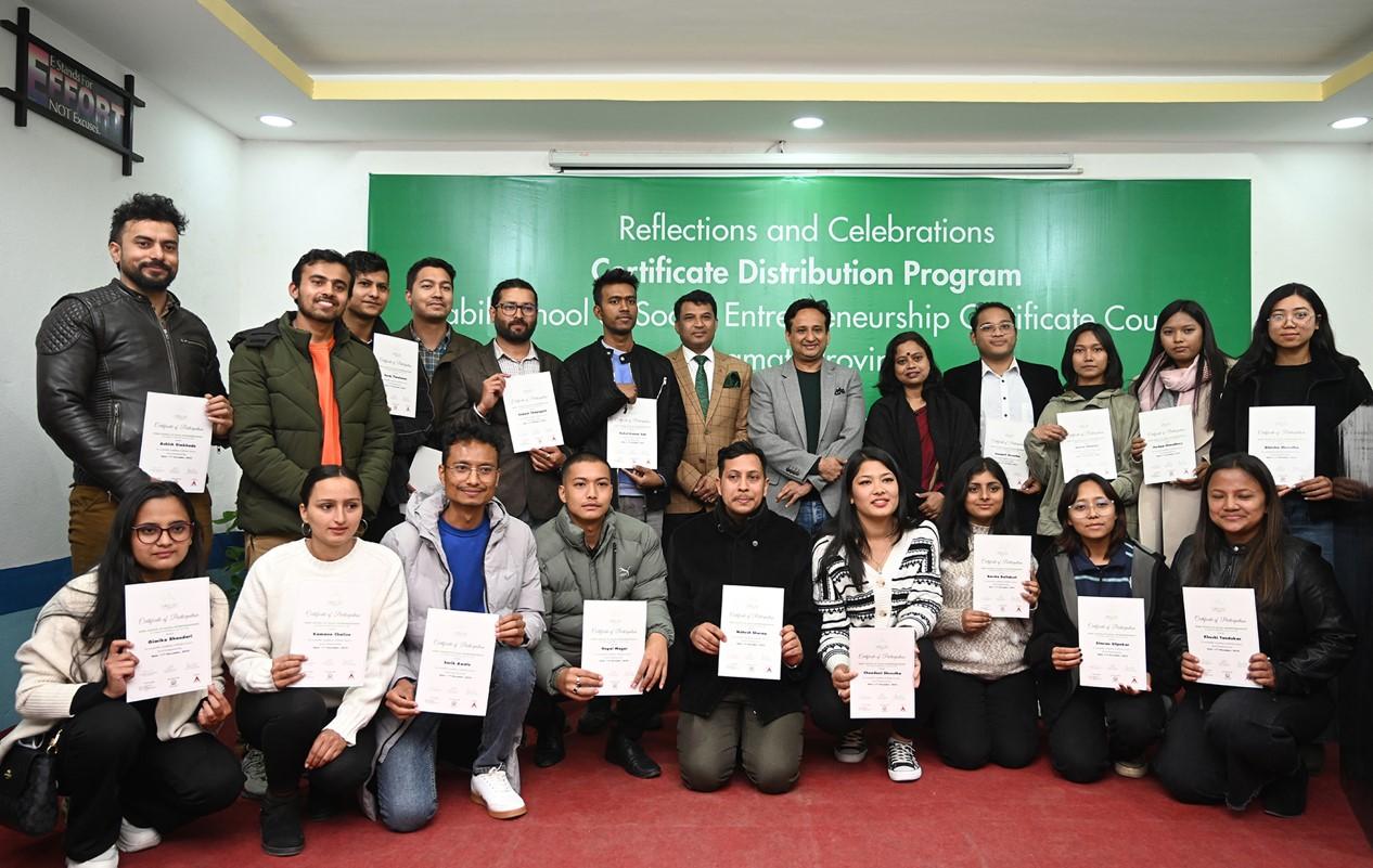 ललितपुर । नबिल बैंकले उद्यमी बन्न चाहेर वाग्मती प्रदेशबाट नबिल सामाजिक उद्यमशीलता कार्यक्रम (नबिल एसएसई) सर्टिफिकेसन कोर्समा सहभागी २५ विद्यार्थीलाई आइतबार प्रमाणपत्र प्रदान गरिएको छ ।