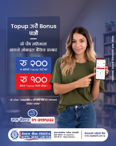 नेपाल बैंकले शुरु गर्यो ‘टप अप गरौं बोनस पाऔं’ अभियान