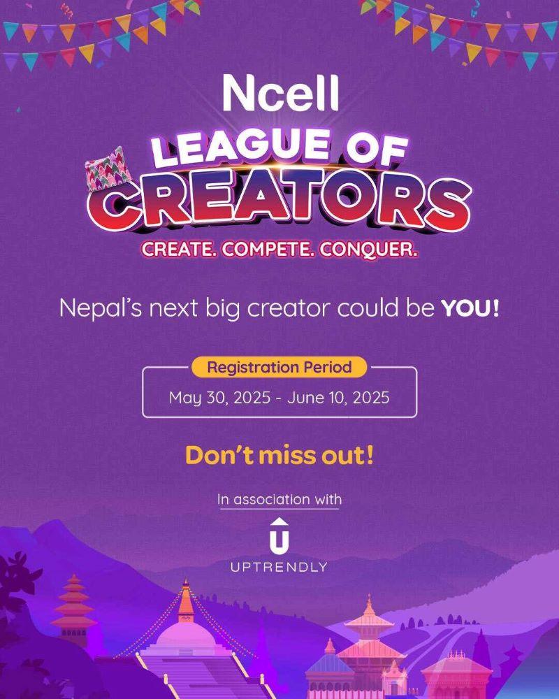 काठमाडौं । एनसेलले अपट्रेन्डलीसँगको सहकार्यमा ‘लीग अफ क्रिएटर्स’ अभियानको सुरुवात गरेको छ । यसले नेपालभरि फैलिएर रहेका भावी प्रतिभाशाली डिजिटल सामग्री निर्माताको पहिचान र सशक्तीकरण गर्ने लक्ष्य लिइएको छ ।
