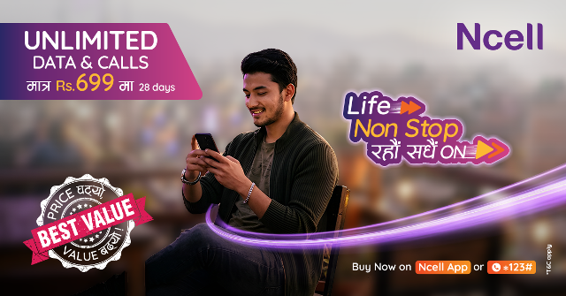 “कनेक्टिभिटीको महत्व र दूरसञ्चार सेवाप्रतिको बढ्दो मागलाई ध्यानमा राख्दै, नयाँ वर्ष २०८३ को अवसर पारेर, हामीले अनलिमिटेड डेटा र कलसहितको यो प्याक सञ्चालनमा ल्याएका छौं । यो विशेष प्याकले सेवाको लागत थप घटाउँदै ‘बेस्ट भ्यालु’ प्रदान गर्दछ र ग्राहकहरूको जीवनलाई नन् स्टप र डिजिटल बनाउँदै सधैं अन रहन सहयोग पु¥याउने विश्वास लिएका छौं,” एनसेलका चीफ कन्सुमर बिजनेस अफिसर उपाङ्ग दत्ताले भने । नेपाली उपभोक्ताहरूलाई सशक्त बनाउने आफ्नो प्रतिबद्धता जारी राख्दै यो प्याक सञ्चालनमा ल्याएको र यसले विभिन्न सेवा सुविधा  अनलाईनबाटै उपलब्ध गराउने सरकारको योजनामा मद्दत गर्ने दत्ताले बताए ।