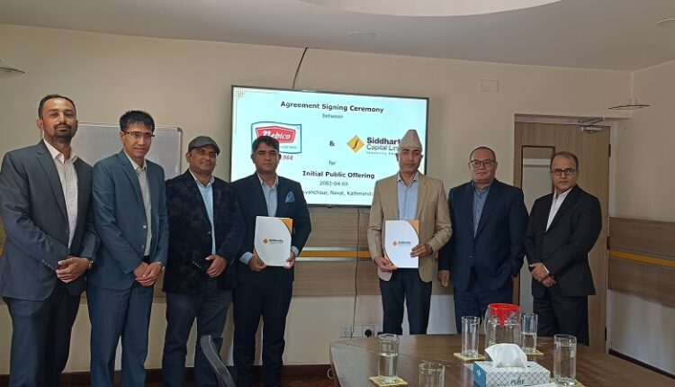 यस उद्देश्यका लागि नेबिको लिमिटेडले सिद्धार्थ क्यापिटल लिमिटेडलाई निष्काशन तथा बिक्री प्रबन्धकको जिम्मेवारी दिएको छ । सो सम्बन्धी सम्झौतापत्रमा बिहीबार सिद्धार्थ क्यापिटलको नक्सालस्थित कार्यालयमा दुवै पक्षले हस्ताक्षर गरेका छन् । नेबिकोका तर्फबाट अध्यक्ष राजबहादुर सिंह र सिद्धार्थ क्यापिटलका प्रमुख कार्यकारी अधिकृत सन्दिप कार्कीले सम्झौतापत्रमा हस्ताक्षर गरेका हुन् ।