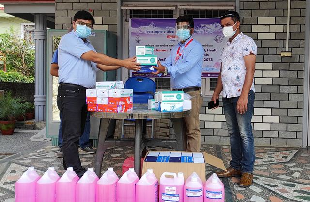 नेलम्बोेले डिस्पोजल मास्क २५ सय पीस, फेस सिल्ड ५० पीस, सेनीटाइजर ५० लिटर, डिस्पोजल ग्लब्स १० प्याकेट सहयोग गरेको अध्यक्ष देवकोटाले जानकारी गराए । उनका अनुसार ५२ हजार ६ सय ७० रुपैयाँ बराबरको सहयोग सामाग्री हस्तान्तरण गरिएको हो ।