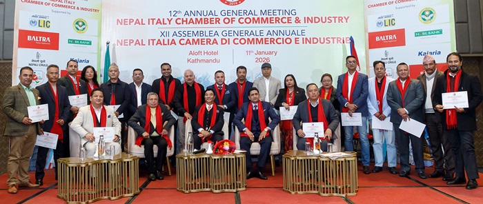 काठमाडौं । नेपाल–इटाली चेम्बर अफ कमर्स एण्ड इन्डस्ट्रिज (एनआईसीसीआई) को १२ औं वार्षिक साधारण सभा सम्पन्न भएको छ । साधारण सभामा नेपाल र इटालीबीच द्विपक्षीय व्यापार, लगानी, पर्यटन तथा व्यवसायिक सहकार्य सुदृढ गर्ने आफ्नो प्रतिबद्धता गरिएको छ ।