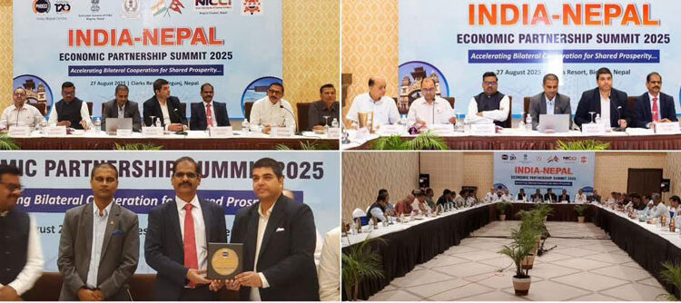वीरगञ्ज । भारत-नेपाल केन्द्र, वीरगञ्जस्थित महावाणिज्य दूतावास, नेपाल भारत उद्योग वाणिज्य संघ वीरगञ्ज च्याप्टर र नाडा अटोमोबाइल एसोसिएसन अफ नेपाल (मधेस प्रदेश) को संयुक्त आयोजनामा वीरगञ्जको क्लाक्र्स रिसोर्टमा भारत–नेपाल आर्थिक साझेदारी शिखर सम्मेलन २०२५ सम्पन्न भएको छ ।