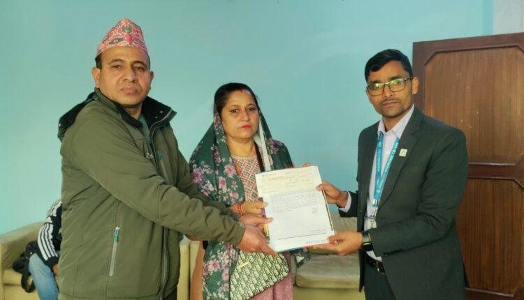पोखरा उ.म.पा–१७, कास्की ठेगाना भएकी बिमित संगिता शाहीको गत माघ १ गते पोखरामा यती एयरलाइन्सको जहाज दुर्घंटनामा असामायिक निधन भएको थियो । बालाजु शाखामा आयोजित एक कार्यक्रमका बीच मृतकले इच्छाइएको व्यक्ति कोपिला घर्ति क्षेत्री (आमा) लाई १ करोड एक लाखको चेक हस्तान्तरण गरिएको हो ।