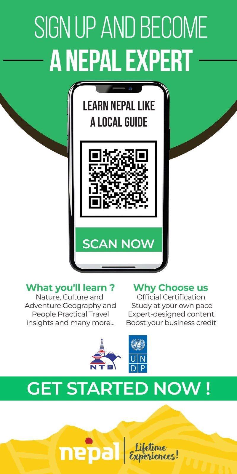 यसले नेपालका पर्यटन पेशाकर्मीहरूको ज्ञान, दक्षता र सेवा गुणस्तर अभिवृद्धि गर्ने उद्देश्यसहित सुरु गरिएको यो अनलाइन तालिमले नेपालको पर्यटन उद्योगलाई दिगो, समावेशी र व्यावसायिक बनाउन सहयोग पु¥याउने मन्त्री पाण्डेको बताएका छन् । ‘सस्टेनेबल टुरिज्म प्रोजेक्ट (एसटीपी)’ अन्तर्गत तयार पारिएको यो तालिम नेपाल पर्यटन बोर्डको इ–लर्निङ्ग प्लेटफर्म https://ntb.caffeinetech.com.np/courses/nepal-travel-specialist-basic मार्फत निःशुल्क रूपमा प्रदान गरिने भएको छ ।