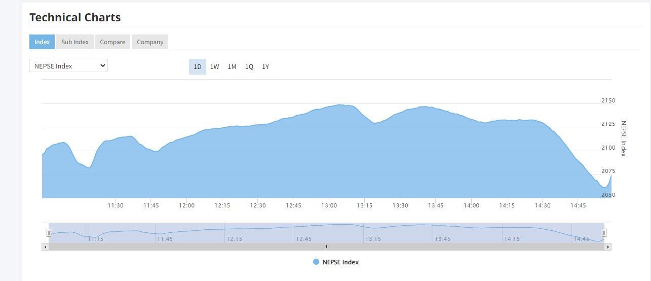 नेप्सेका अनुसार कारोबार भएका १३ वटै उपसमूहको शेयर मूल्यमा गिरावट आएको छ । बैंकिङ १७.१७, व्यापार ८५.१८, होटल तथा पर्यटन ७८.७६, विकास बैंक १००.९४, जलविद्युत् ५२.२३, वित्त ५६.६१, निर्जीवन बीमा २३९.८७, उत्पादन १४५.३५, अन्य ६०.२७, लघुवित्त ११३.०३, जीवन बीमा २१५.९२, सामूहिक लगानी कोष ०.१८ र लगानी २.२८ अंकले ओरालो लागे ।