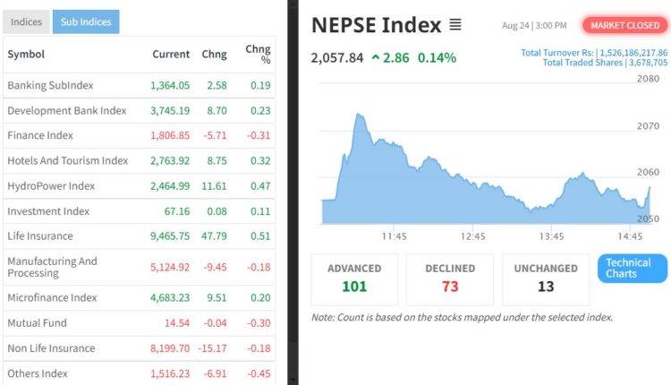 सेयर बजारमा झिनो सुधार : नेप्से २.८६ अंकले बढ्दा डेढ अर्बको कारोबार