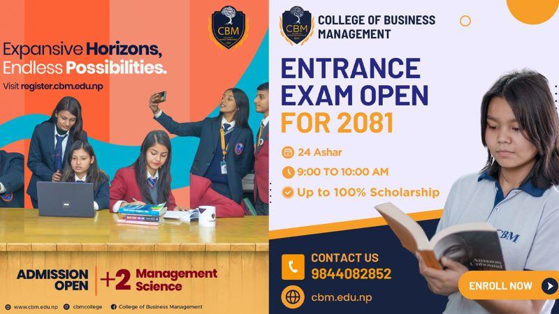 काठमाडौं । कलेज अफ बिजनेश म्यानेजमेन्ट (सीबीएम) मा अध्ययन गर्ने विद्यार्थीले छात्रवृत्ति तथा सुलभ शूल्कमा पठनपाठनको अवसर पाउँदै आएका छन् । शैक्षिक गुणस्तरमा अब्बल मानिएको कलेजले विद्यार्थीलाई मध्यनजर गर्दै आगामी शैक्षिक सत्रका लागि छात्रवृत्ति योजना सार्वजनिक गरिसकेको छ ।
