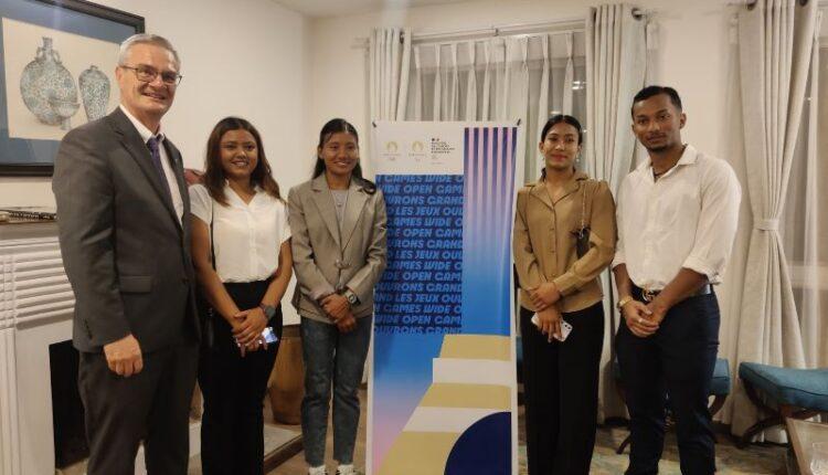 यहाँस्थित फ्रान्सेली राजदूतावासका कार्यवाहक राजदूत जाँ बाप्टिस्टी लेसिकले आयोजना गर्नुभएको उक्त समारोहमा नेपाल ओलम्पिक कमिटीका अध्यक्ष जीवनराम श्रेष्ठ, जुडो खेलाडी मनिता प्रधान, ब्याडम्निटनका प्रिन्स दाहाल, एथ्लेटिक्सकी सन्तोषी श्रेष्ठ, सुटिङकी सुस्मिता नेपाल र ओलम्पिक कमिटीका पदाधिकारी सहभागी थिए ।