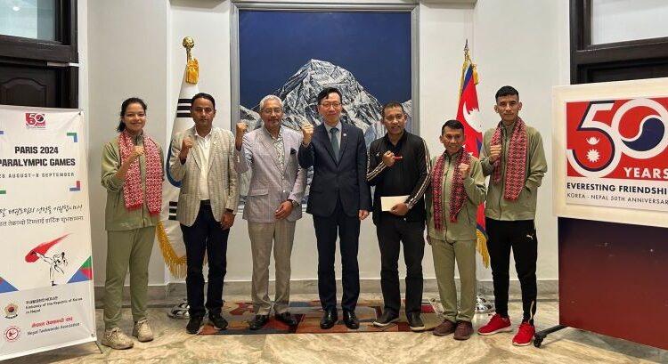 काठमाडौं । नेपालका लागि कोरियाली राजदूत पार्क थेयङले पारा ओलम्पिक २०२४ मा सहभागी हुन लागेका नेपाली खेलाडीलाई सफलताको कामनासहित बिदाइ गरेका छन् । सो प्रतियोगिता आगामी २८ अगस्टदेखि ८ सेप्टेम्बरसम्म फ्रान्सको पेरिसमा आयोजना हुँदैछ ।