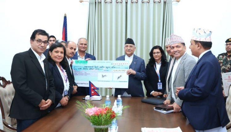 प्रधानमन्त्री ओलीलाई प्राधिकरणका अध्यक्ष सूर्य सिलवालले आज सिंहदरबारमा सोको चेक हस्तान्तरण गरेका हुन् ।