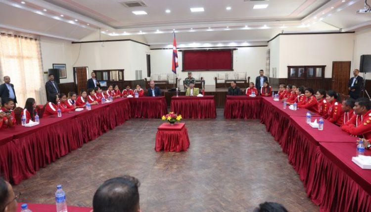 प्रधानमन्त्री निवास, बालुवाटारमा आज राष्ट्रिय टोलीका महिला फुटबल खेलाडीसँगको भेटघाटका क्रममा उनले खेल क्षेत्रको विकास र खेलाडीलाई प्रोत्साहनमा कुनै कञ्जुस्याई नगर्ने स्पष्ट गर्दै तिहारलगत्तै पुरस्कार प्रदान गर्ने जानकारी गराएका हुन् । उक्त खेलमा दोस्रो भएको नेपाली टोलीका खेलाडीले जनही रु ३ लाखका दरले पुरस्कार पाउनेछन् ।