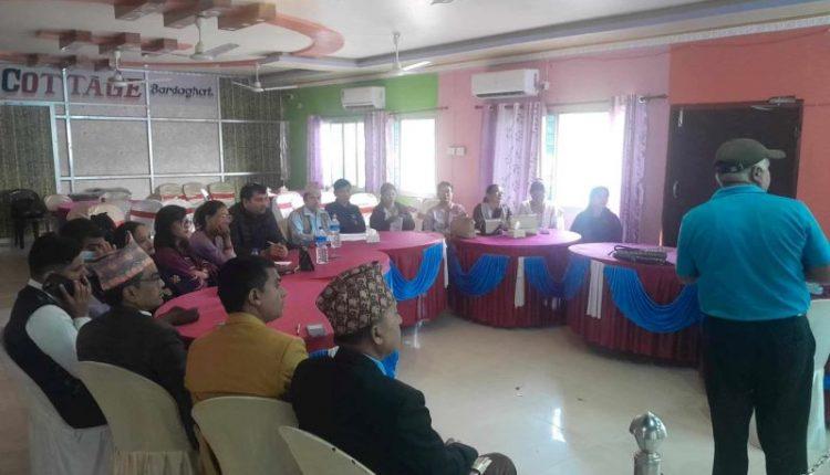 नवलपुर । पछौटेपन उन्मुलन समाज (बेस नेपाल) ले नवनिर्वाचित कार्यसमितिका पदाधिकारीलाई २ दिने क्षमता अभिबृद्धि सम्बन्धी तालिम सम्पन्न गरेको छ । संस्थाका कार्यसमिति अध्यक्ष उमादेवी भट्टराईको अध्यक्षतामा गत कात्तिक २३ र २४ गते बि.एण्ड बि.कटेज बर्दघाटमा तालिम सञ्चालन गरिएको हो ।
