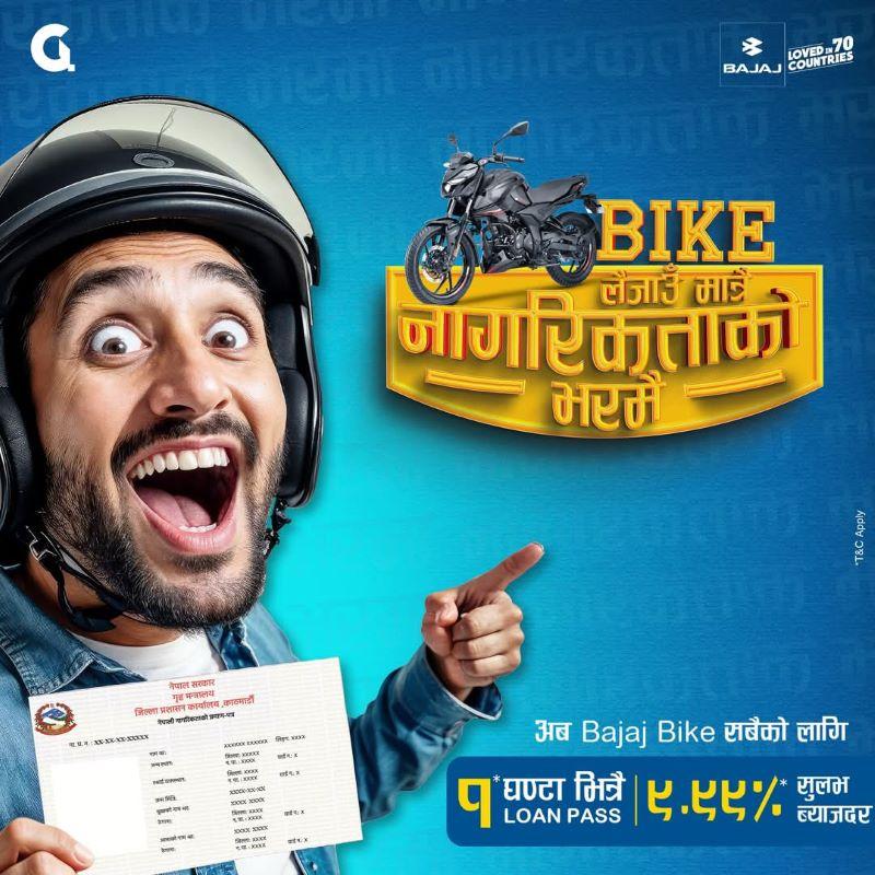 यी झन्भटहरुलाइ हटाएर अब भने बजाजका ग्राहकले यी कागजातको सट्टामा नागरिकता मात्रै लगेर सहजै बजाजका मोटरसाइकल फाइनान्स मार्फत किन्न सक्नेछन् । किस्ताबन्दीमा किन्न चाहने ग्राहकले १ घण्टाभित्रै लोन पास गरेर ९.९९ प्रतिशत सुलभ ब्याजदरमै सरल फाइनान्समार्फत यो सुविधा पाउन सक्नेछन् ।