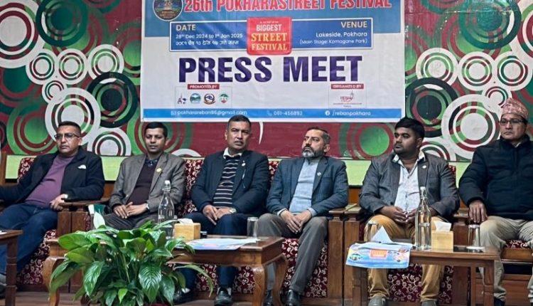 पोखरा । रेष्टुरेण्ट एण्ड बार एशोसियशन (रेवान) पोखराको आयोजनामा २६ औँ ‘पोखरा सडक महोत्सव’ हुने भएको छ । अंग्रेजी नयाँ वर्षको स्वागत गर्दै पुष १३ गते देखि १७ गतेसम्म आयोजना हुन लागेको सडक महोत्सवका सन्दर्भमा सोमवार पत्रकार सम्मेलनमार्फत जानकारी दिइएको छ ।