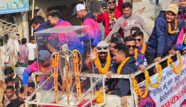 महोत्तरी । नेपाल प्रिमियर लिग (एनपिएल) पहिलो संस्करण विजेता जनकपुर बोल्ट्सका खेलाडीहरु महोत्तरीमा आज आयोजित ‘ट्रफी परेड’मा सहभागी भएका छन् । मधेस प्रदेशका सबै जिल्लामा विजयोत्सव मनाउने क्रममा आज यहाँ आइपुगेको उक्त टोलीलाई मटिहानीका नगरबासीले भव्य स्वागत गरे ।