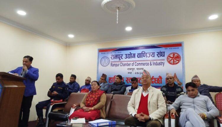 रामपुर उद्योग बाणिज्य संघको आयोजनामा यही आउँदो माघ १५ गतेदेखि २७ गतेसम्म हुने रामपुर महोत्सव तथा व्यापार मेलाका बारेमा सरोकारवालाई तयारीबारे जानकारी दिइएको छ । संघका अध्यक्ष भोजेन्द्रप्रकाश ढकालको अध्यक्षतामा बैठक बसेको हो । अध्यक्ष ढकालले महोत्सवको लागि ३२ वटा विभिन्न तयारी उपसमिति गठन गरी आफ्नो जिम्मेवारी अनुसारको तयारी भइरहेको जानकारी दिएका छन् ।