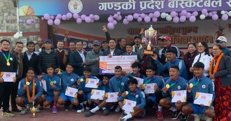 कास्की । पोखरामा सञ्चालन भएको ‘पोखरा कप’ राष्ट्रिय पुरुष बास्केटबल प्रतियोगिताको उपाधि घरेलु टोली गण्डकी प्रदेशले जितेको छ ।पोखरा रङ्गशालास्थित बास्केटबल कोर्टमा बुधवार सम्पन्न फाइनल खेलमा बागमती प्रदेशमाथि ८१–७८ अङ्कको झिनो अन्तरको जित निकाल्दै गण्डकी च्याम्पियन बनेको हो ।