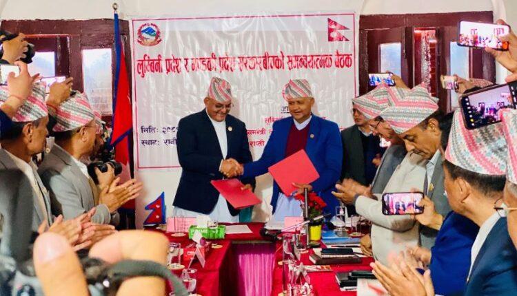 उक्त बैठकमा लुम्बिनी प्रदेशका मुख्यमन्त्री चेतनारायण आचार्य र गण्डकी प्रदेशका मुख्यमन्त्री सुरेन्द्रराज पाण्डेले प्रदेशस्तरीय समन्वय र सहकार्यलाई सुदृढ गर्दै प्रदेशको रणनीतिक विकासका लागि २१ बुँदे साझा प्रतिबद्धतामा हस्ताक्षर गरेका छन् । नेपालको संविधानको धारा ५६ अनुसार राज्यशक्तिको बाँडफाँट, सङ्घीय ढाँचाको शासकीय अभ्यास तथा तीन तहका सरकारबीच समन्वय, सहकार्य र सहअस्तित्वको मर्मलाई आत्मसात् गर्दै लुम्बिनी र गण्डकी प्रदेश सरकारबीचको पहिलो ऐतिहासिक बैठक पाल्पाको ऐतिहासिक दरबार रानीमहलमा सम्पन्न भएको हो ।