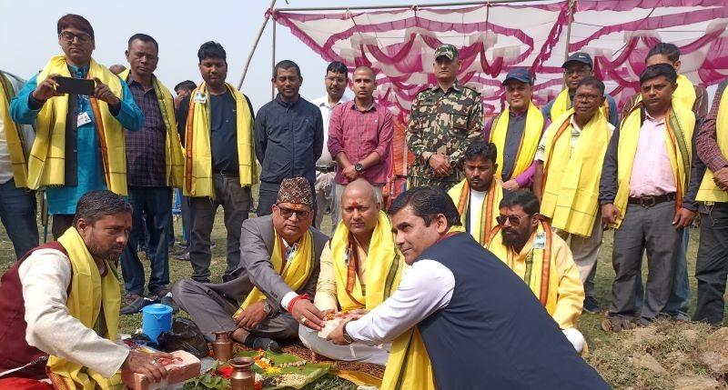 कार्यालयको भवनका लागि सीताकुण्डका महन्त राम नरेश दासले एक बिघा जग्गा दान गर्नुभएको छ । मुख्यमन्त्री सिंह, श्रम तथा यातायातमन्त्री राय, यातायात कार्यालय प्रमुख धनञ्जयकुमार सिंहले संयुक्त रुपमा हिन्दु विधिअनुसार भवन निर्माणस्थलको पूजन गरेका थिए । रासस