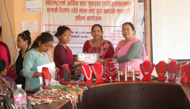 रामपुर (पाल्पा) । पाल्पाको रामपुर नगरपालिकामा पोतेमाला तथा चुरा बनाउने तालिम सम्पन्न भएको छ । नगरपालिकाले महिलालाई १३ दिने पोतेमाला तथा चुरा बनाउने तालिम प्रदान गरेको हो ।
