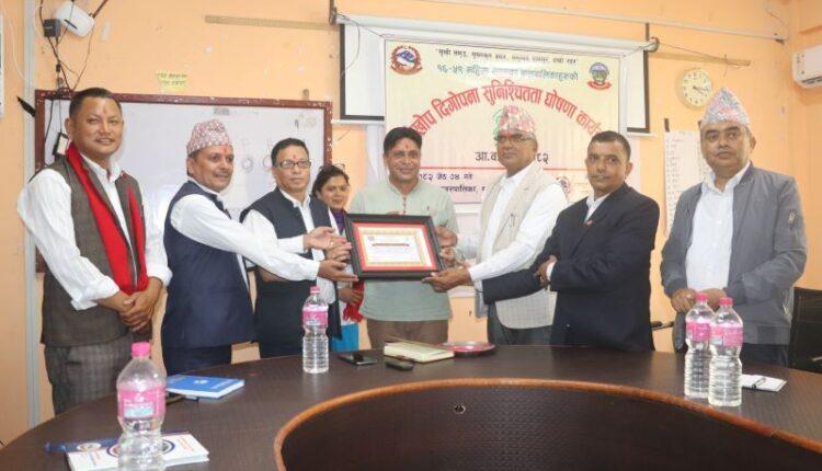नगर प्रमुख थापाको अध्यक्षतामा भएको कार्यक्रममा महिला स्वास्थ्य स्वंय सेविका कमला घर्तीले आफ्नो भनाइ राखेकी थिइन् । स्वास्थ्य शाखा प्रमुख घिमिरेको स्वागत र नर्सिङ्ग अधिकृत पुनम धितालको सञ्चालनमा कार्यक्रम भएको हो । कार्यक्रमको अवसरमा नगरभित्रका दश वडालाई पूर्णखोप सुनिश्चितता घोषणा र वडा नं. १ लाई पूर्ण संस्थागत प्रसुति सेवायुक्त वडा घोषणा गरिएको छ ।