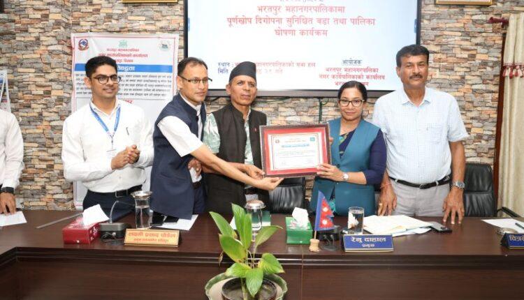 चितवन । भरतपुर महानगरपालिकालाई पूर्ण खोप दिगोपना सुनिश्चितताको घोषणा गरिएको छ । यसअघि पूर्ण खोप घोषणा गरिएता पनि हरेक बर्ष बालबालिका जन्मने क्रम र खोपको आवश्यकता निरन्तर रहने भएकाले महानगरपालिकाले बिहीबार भरतपुर महानगर सभाहलमा एक कार्यक्रमको आयोजना गरी पूर्ण खोप दिगोपना सुनिश्चितताको घोषणा गरेको हो ।