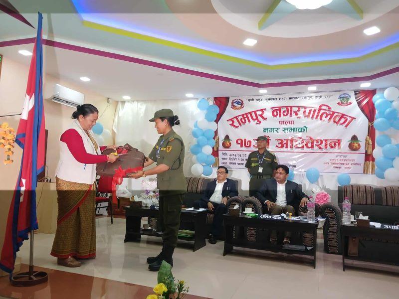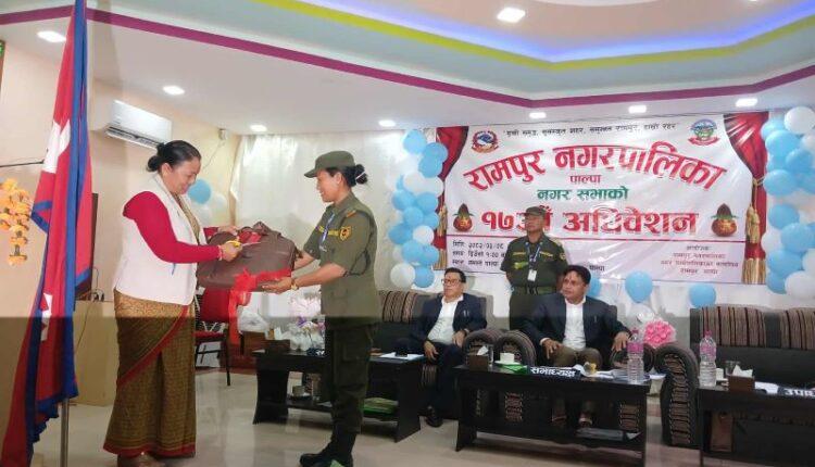 नगर सभामा नगर प्रमुख थापाले आगामी आर्थिक वर्षको वार्षिक नीती तथा कार्यक्रम प्रस्तुत गरेका छन् । उज्यालो शहर, रामपुर नगर भन्ने भनाइ आत्मसात् गर्दै सडकबत्ती साझेदारी कार्यक्रम अन्तर्गत नगरपालिकालाई उज्यालो बनाउन सडकबत्ती जडान गरी बजारको सौन्दर्यकरण गर्ने कार्य साझेदारी तथा सहकार्यमा अगाडि बढाइने, नगरको दीगो विकासका लागि नगर तथा वडा गौरवका योजना, ठुला योजनाहरुलाई प्राथमिकता दिइने, योजना कार्यान्वयनमा नागरिक सहभागिता अभिवृद्धि जस्ता कार्यक्रम रहेको नगर प्रमुख थापाले प्रस्तुत गरे ।