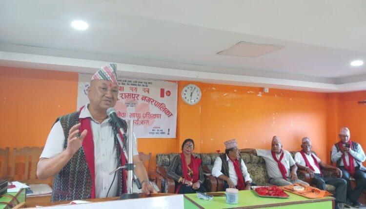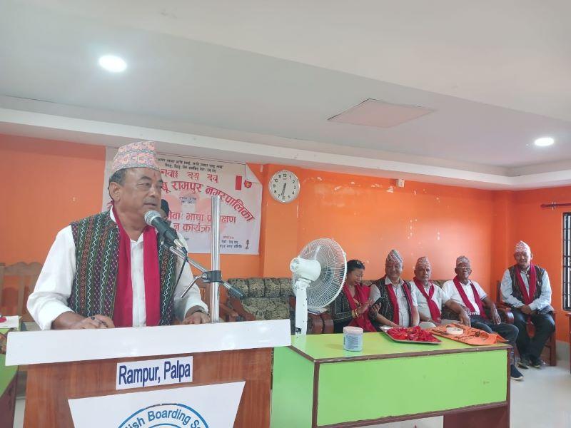 सुशीला रेग्मी/रामपुर (पाल्पा) । पाल्पाको रामपुर नगरपालिकामा सञ्चालन भएको स्थानीय नेवाः भाषा प्रशिक्षण कार्यक्रम सम्पन्न भएको छ । नेवाः देय् दवु रामपुर नगर समितिको आयोजनामा एक महिनासम्म सञ्चालन भएको कार्यक्रम शुक्रबार सकिएको हो ।